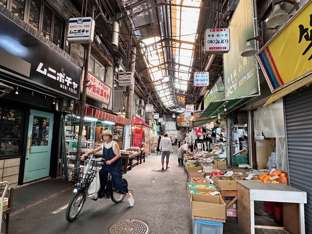 Tsuruhashi is a mix of traditional food suppliers, tiny restaurants, food stalls, and everyday and specialty retailers, with a wide range of services and small-scale manufacturing.